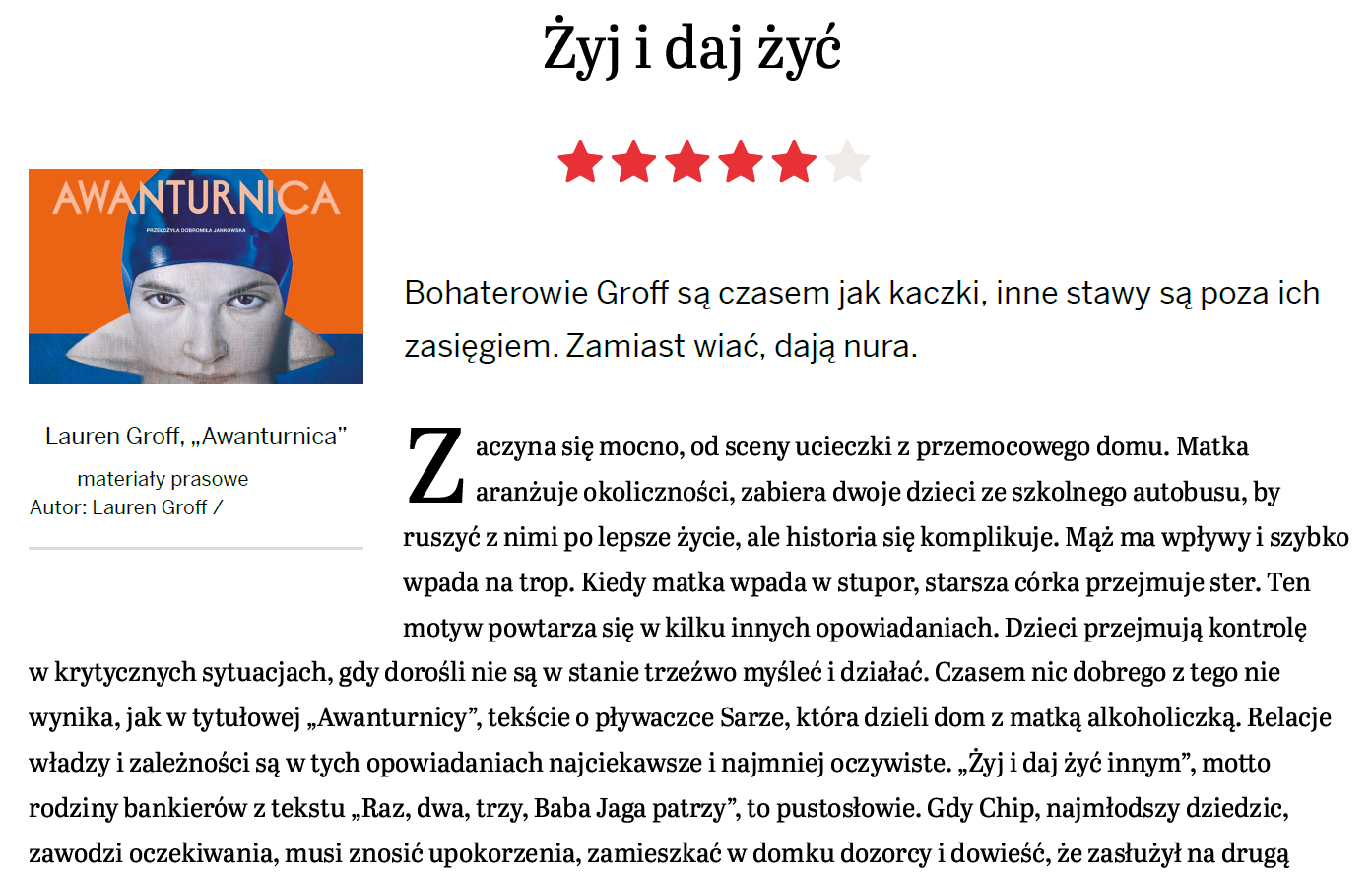 Recenzja książki: Lauren Groff„Awanturnica” w tygodniku Polityka