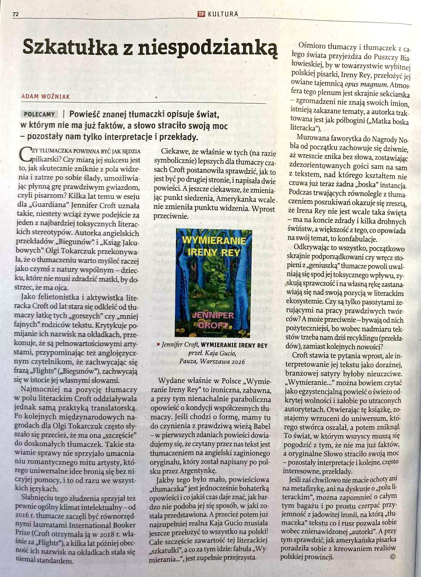 „Zabawna opowieść o współczesnych tłumaczach” – Jennifer Croft, „Wymieranie Ireny Rey” – recenzja powieści w Tygodniku Powszechnym