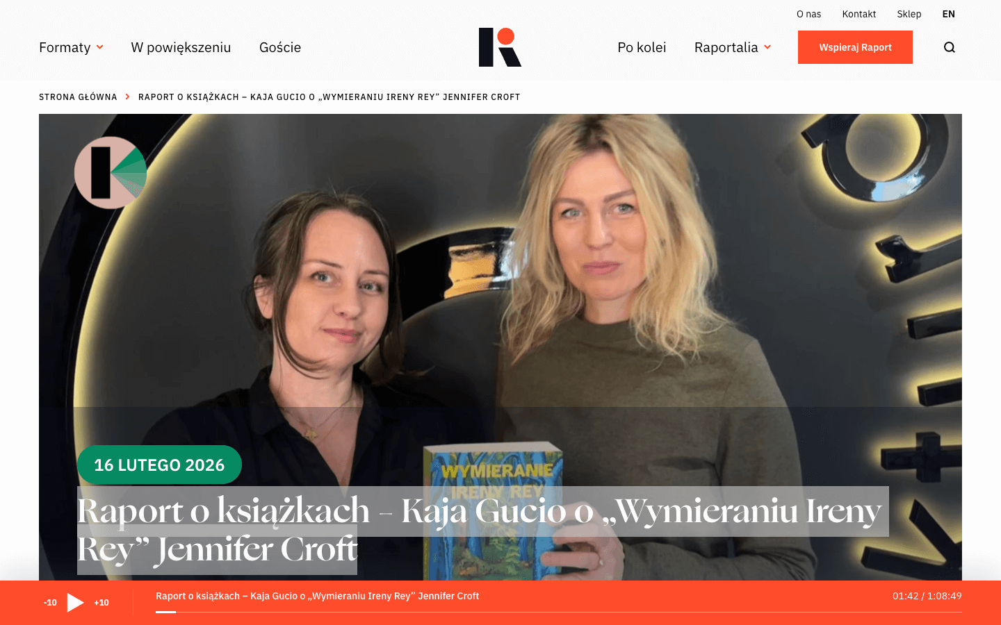 „Raport o książkach – Kaja Gucio o „Wymieraniu Ireny Rey” Jennifer Croft” – rozmowę prowadziła Agata Kasprolewicz w serwisie „Raport o stanie świata”