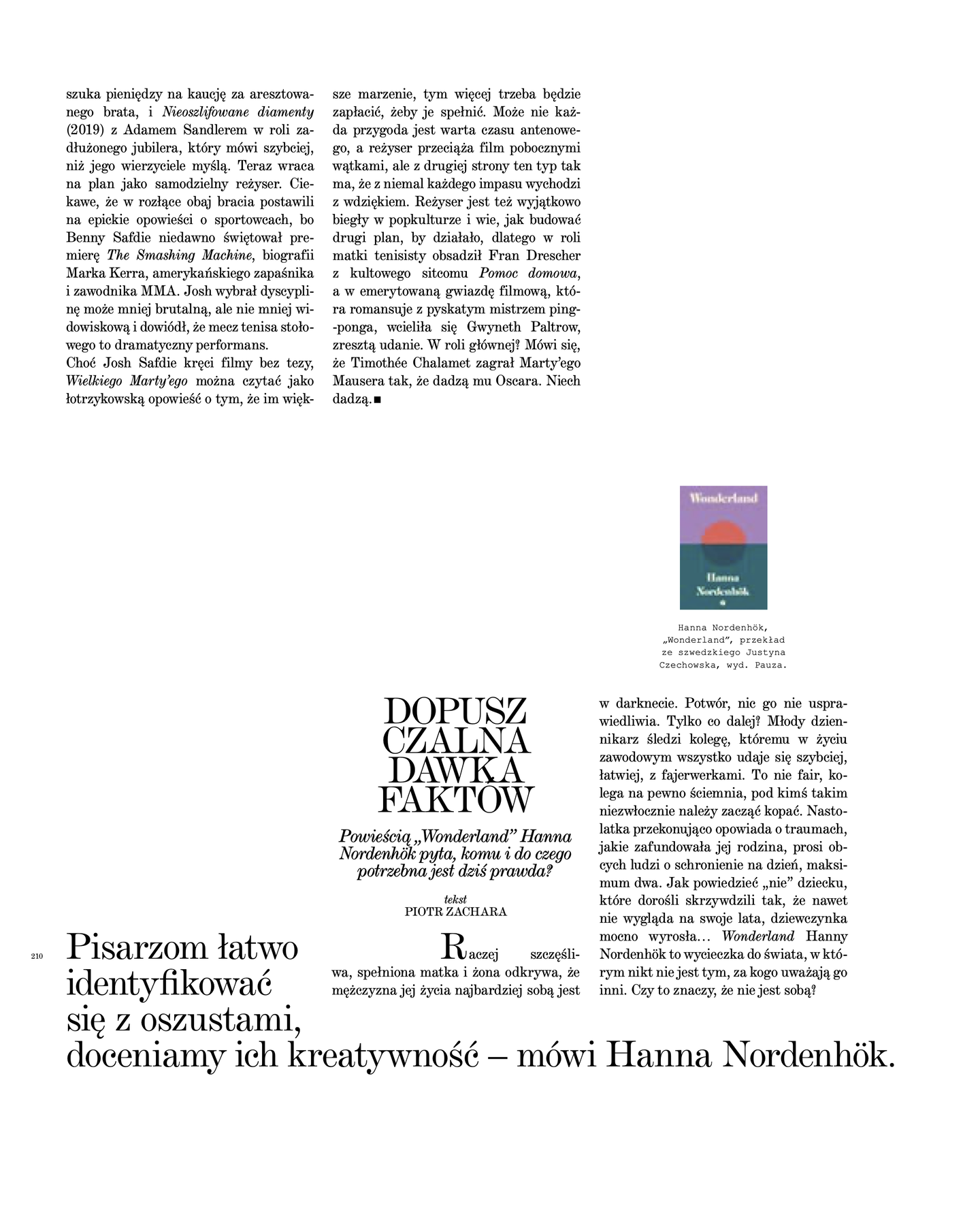 Hanna Nordenhök pochodzi ze Szwecji. Rozpoczęła karierę literacką od poezji, co jest wyraźnie widoczne w jej gęstej i misternej prozie, jednak od dekady publikuje przede wszystkim powieści – Wonderland jest piąta. Wcześniejsze zostały entuzjastycznie przyjęte przez krytykę i czytelników, otrzymały liczne nominacje i najważniejsze wyróżnienia literackie w Szwecji. Jej najbardziej znane książki to Det vita huset i Simpang (2013), Asparna (2017) oraz Caesaria (2020), której przyznano prestiżową Nagrodę Szwedzkiego Radia. Nordenhök jest także laureatką Madeleine Gustafsson-priset (2019) wręczanej przez Stowarzyszenie Szwedzkich Pisarzy. Uważana za jedną z najlepszych szwedzkich pisarek swojego pokolenia, jest również uznaną tłumaczką z języka hiszpańskiego – przekładała między innymi utwory Fernandy Melchor, Samanty Schweblin, Benjamína Labatuta i Eleny Medel.